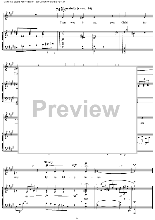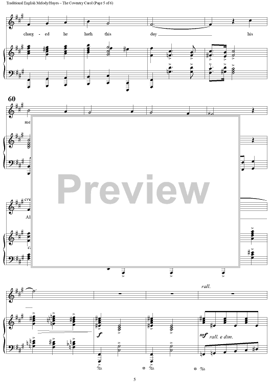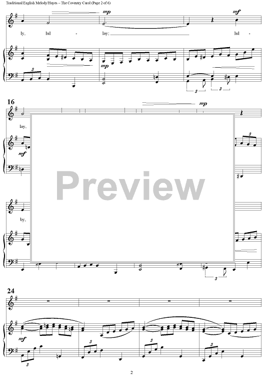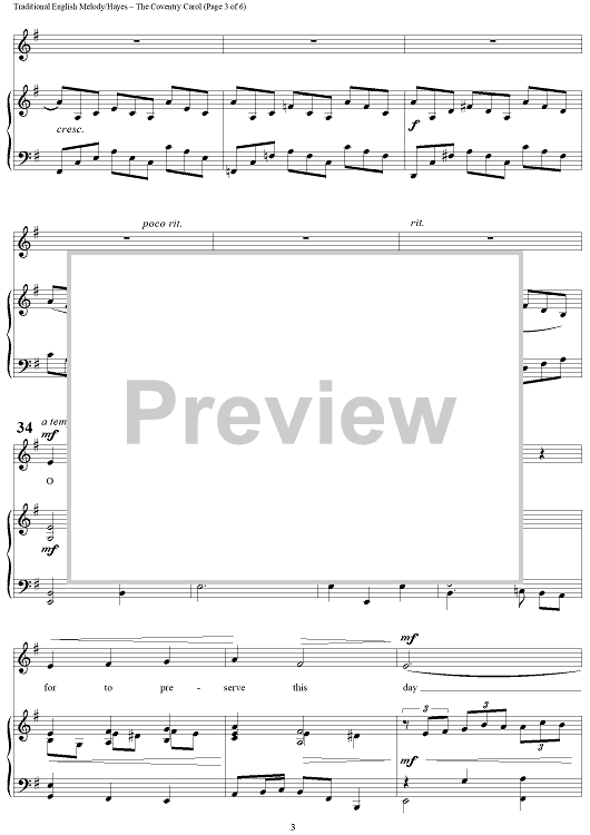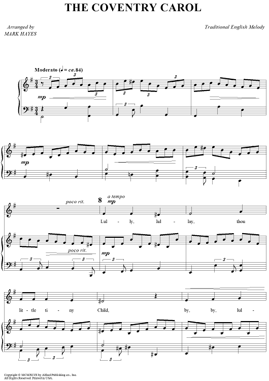 "The Conventry Carol" Sheet Music by Traditional English Melody