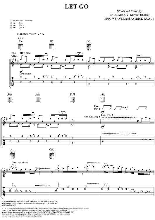Digital Sheet Music for Let Go by 12 Stones, Paul McCoy, Kevin Dorr, Eric Weaver, Patrick Quave scored for Guitar Tab/Vocal; id:297330