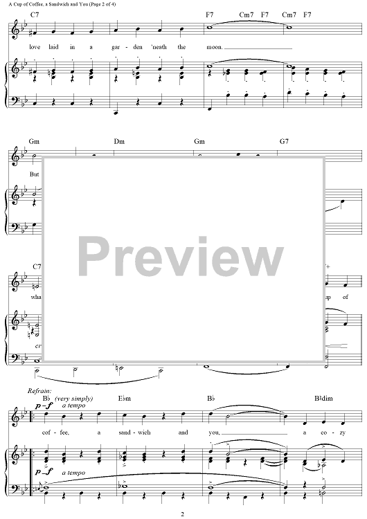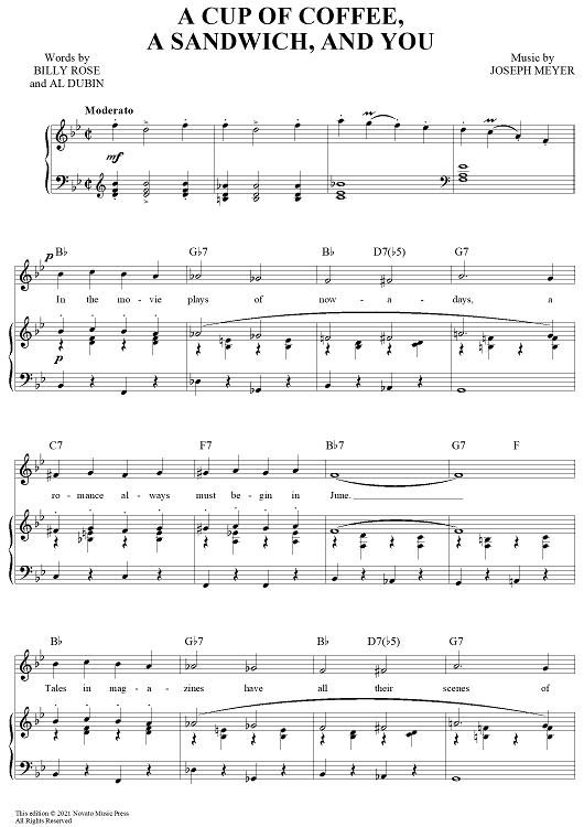 Digital Sheet Music for A Cup of Coffee, A Sandwich, And You by Al Dubin, Billy Rose, Joseph Meyer scored for Piano/Vocal/Chords; id:255336