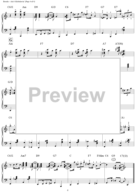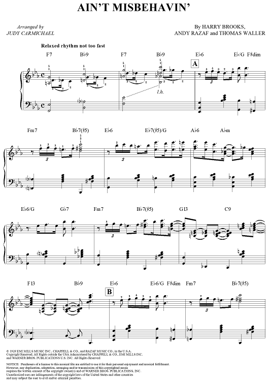 Digital Sheet Music for Ain't Misbehavin' by Harry Brooks, Judy Carmichael, Andy Razaf, Thomas Waller scored for Piano Solo; id:284892