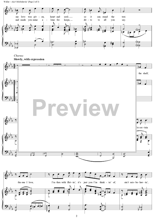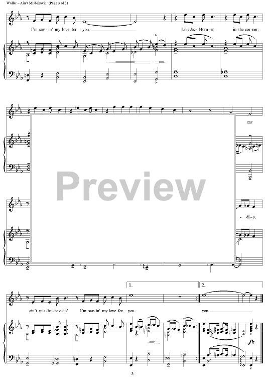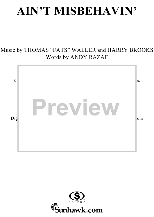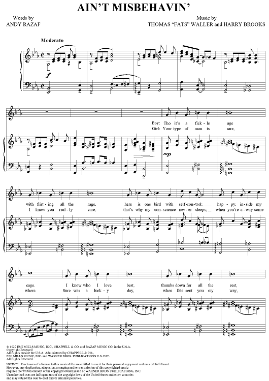 Digital Sheet Music for Ain't Misbehavin' by Harry Brooks, Andy Razaf, Thomas Waller scored for Piano/Vocal; id:289223