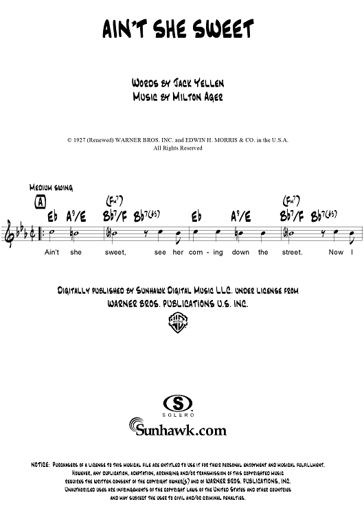 Digital Sheet Music for Ain't She Sweet by Milton Ager, Jack Yellen scored for Lead Sheet; id:307538