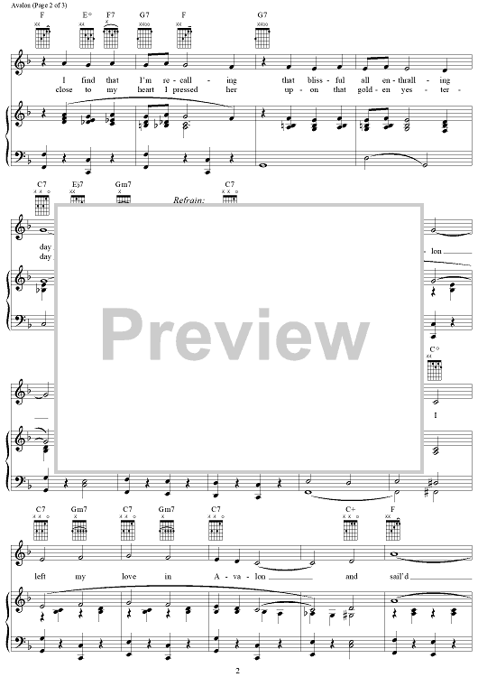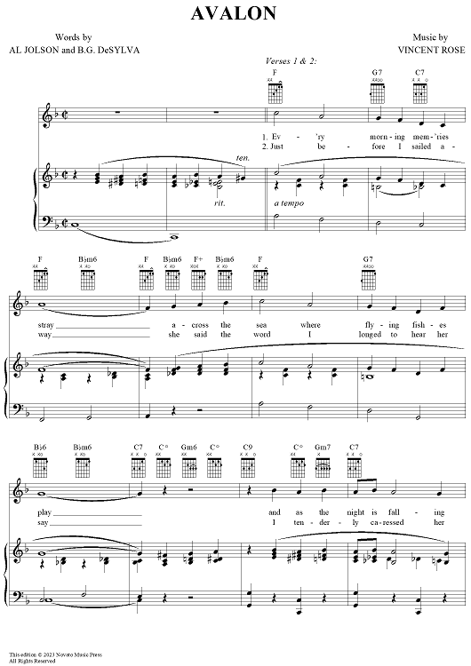 Digital Sheet Music for Avalon by Al Jolson, Vincent Rose, Buddy DeSylva scored for Piano/Vocal/Chords; id:254338