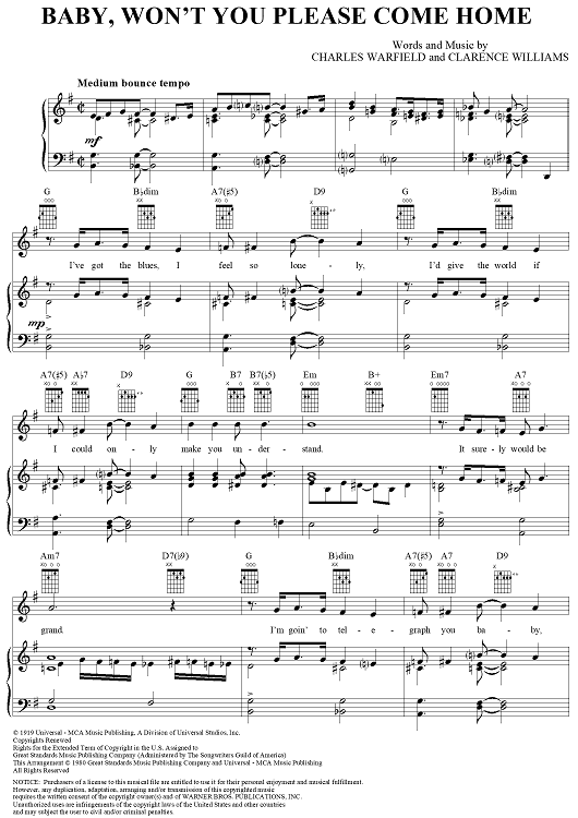 Digital Sheet Music for Baby, Won't You Please Come Home by Clarence Williams, Charles Warfield scored for Piano/Vocal/Chords; id:286623