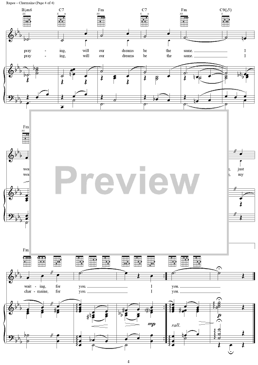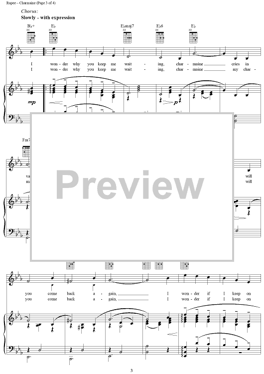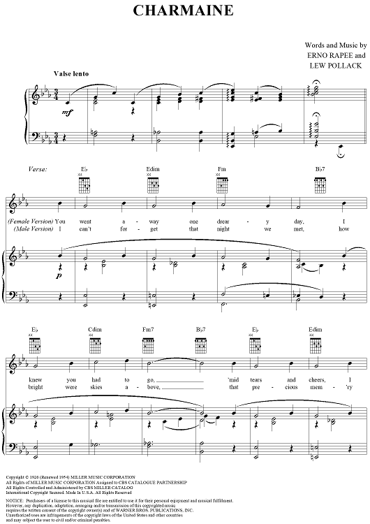 Digital Sheet Music for Charmaine by Lew Pollack, Erno Rapee scored for Piano/Vocal/Chords; id:255020