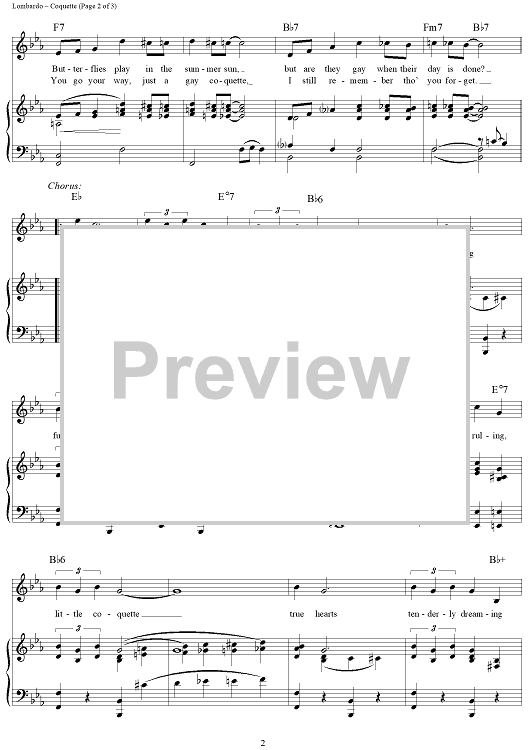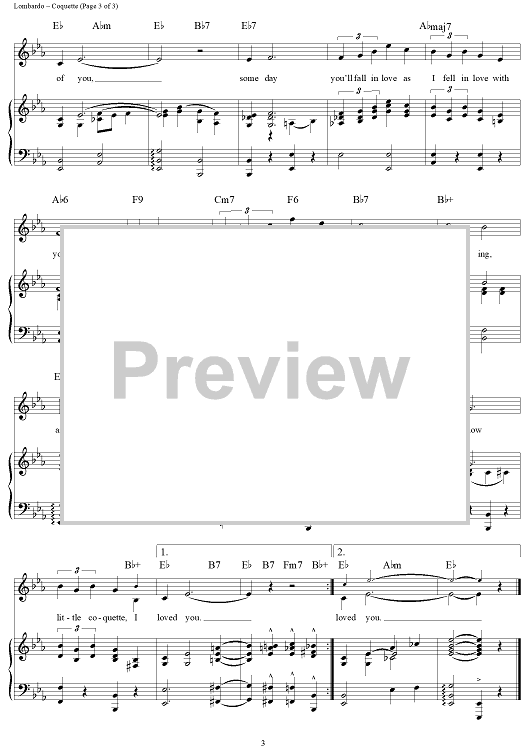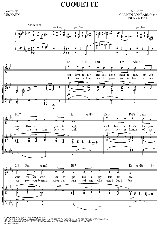 Digital Sheet Music for Coquette by Gus Kahn, Johnny Green, Carmen Lombardo scored for Piano/Vocal/Chords; id:120697