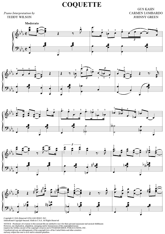 Digital Sheet Music for Coquette by Gus Kahn, Teddy Wilson, Johnny Green, Carmen Lombardo scored for Piano Solo; id:315905