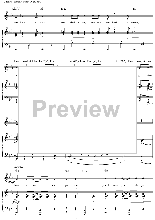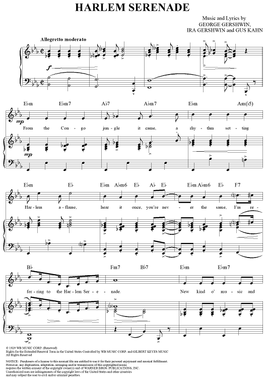 Digital Sheet Music for Harlem Serenade by George Gershwin, Ira Gershwin, Gus Kahn scored for Piano/Vocal/Chords; id:287937