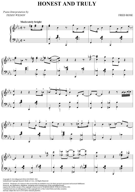 "Honest and Truly" Sheet Music by Teddy Wilson