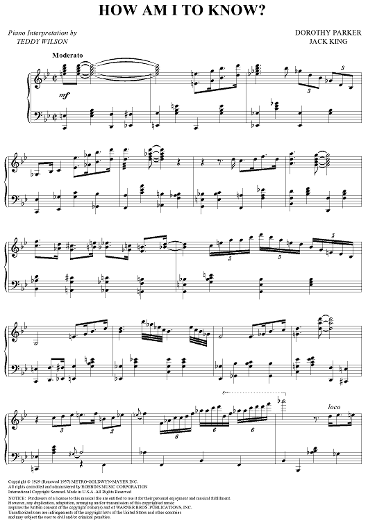Digital Sheet Music for How Am I to Know? by Teddy Wilson, Jack King, Dorothy Parker scored for Piano Solo; id:315912