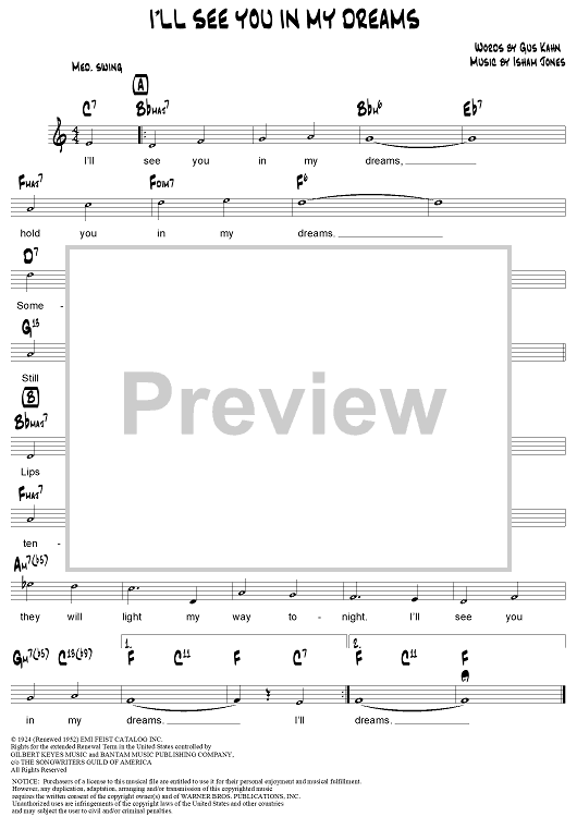Digital Sheet Music for I'll See You in My Dreams by Gus Kahn, Isham Jones scored for Lead Sheet; id:315461