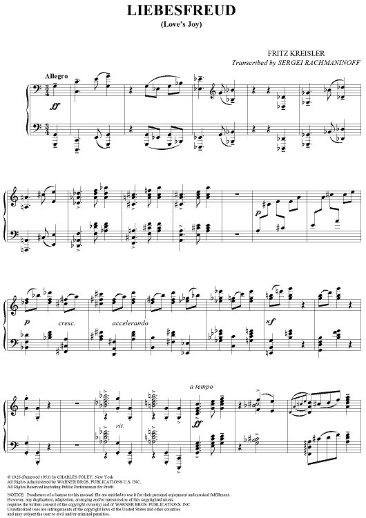 Digital Sheet Music for Liebesfreud by Fritz Kreisler, Sergei Rachmaninoff scored for Piano Solo; id:255048