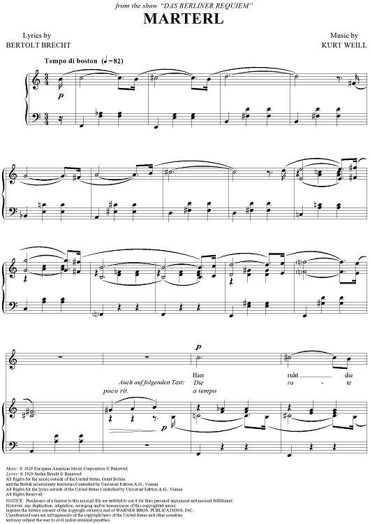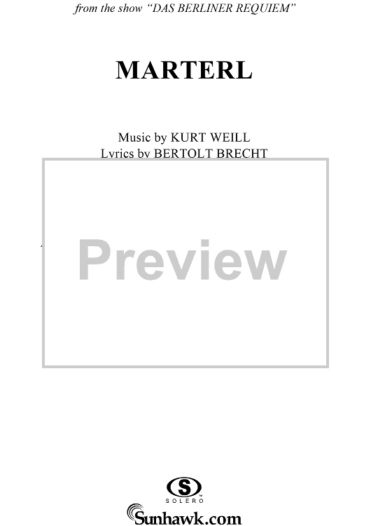 Digital Sheet Music for Marterl by Bertold Brecht, Kurt Weill scored for Piano/Vocal; id:263532