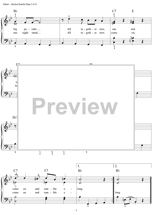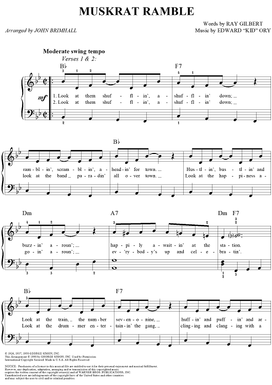 Digital Sheet Music for Muskrat Ramble by Ray Gilbert, Edward Ory, John Brimhall scored for Easy Piano/Vocal; id:268273