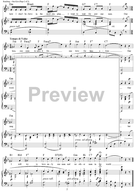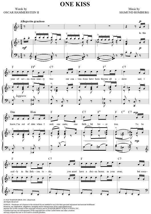 Digital Sheet Music for One Kiss by Sigmund Romberg, Oscar Hammerstein II, Nathaniel Shilkret scored for Piano/Vocal/Chords; id:286622
