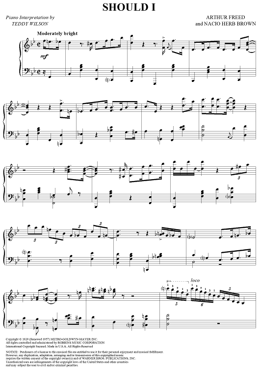 Digital Sheet Music for Should I by Nacio Herb Brown, Teddy Wilson, Arthur Freed scored for Piano Solo; id:315906