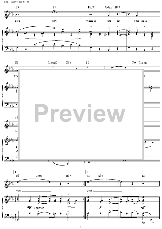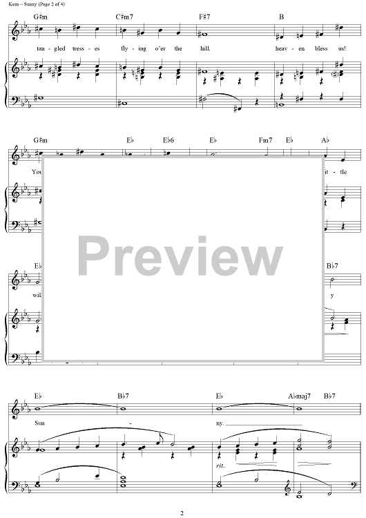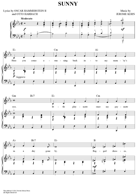 Digital Sheet Music for Sunny by Jerome Kern, Oscar Hammerstein II, Otto Harbach, Eddie Elkins scored for Piano/Vocal/Chords; id:286512