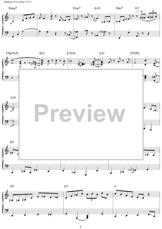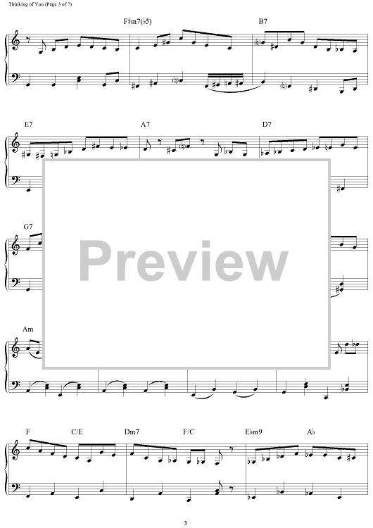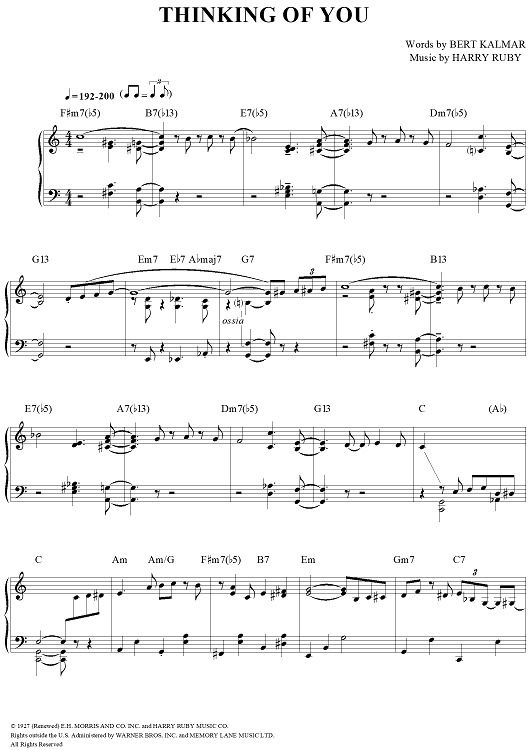 Digital Sheet Music for Thinking Of You by George Shearing, Bert Kalmar, Harry Ruby scored for Piano Solo; id:283450