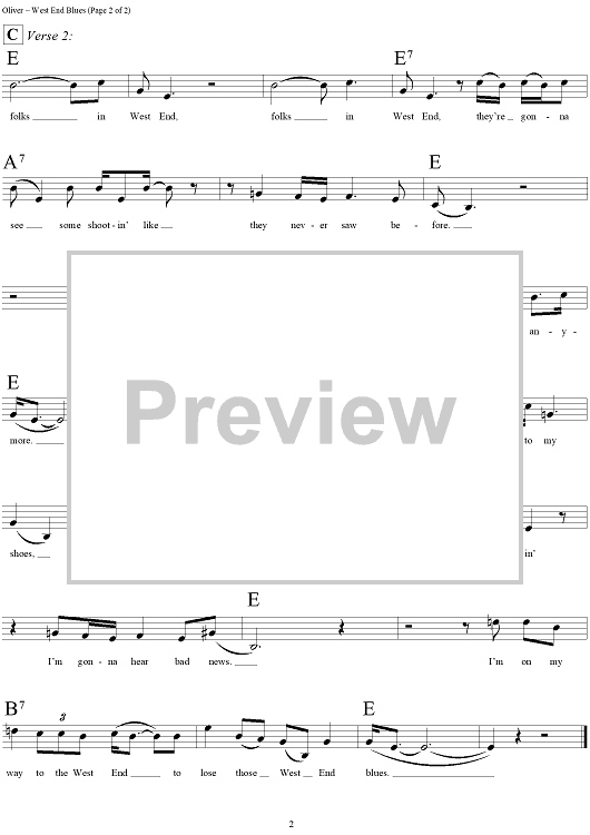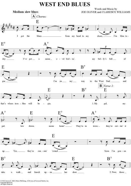 Digital Sheet Music for West End Blues by Clarence Williams, King Oliver scored for Lead Sheet; id:291809