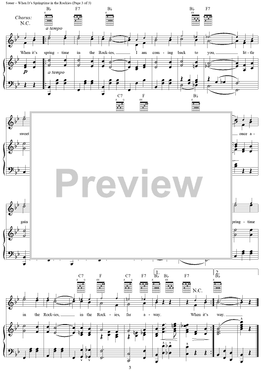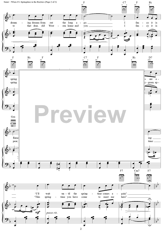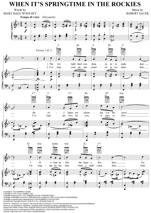 Digital Sheet Music for When It's Springtime in the Rockies by Robert Sauer, Mary Hale Woolsey scored for Piano/Vocal/Chords; id:256341