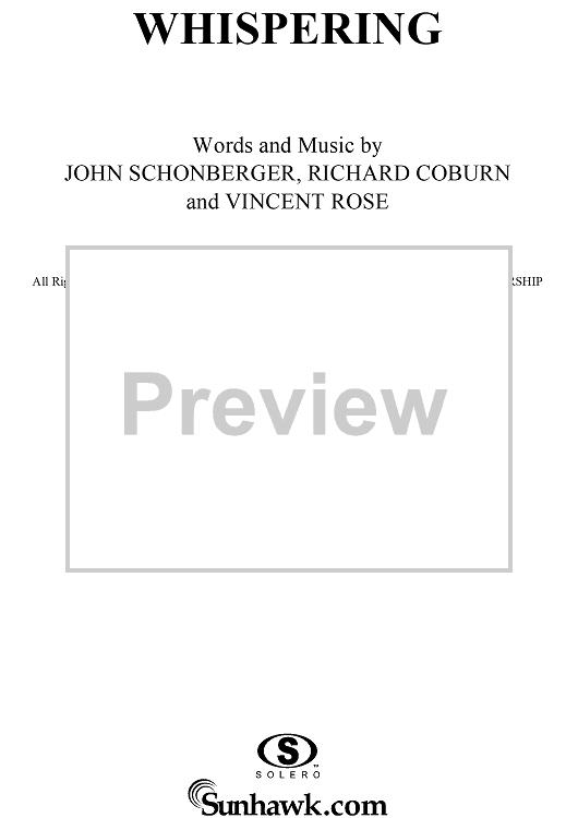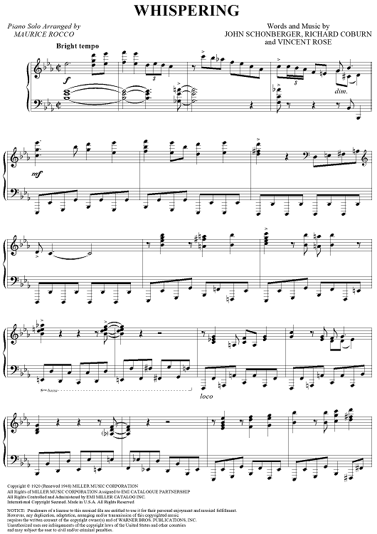 Digital Sheet Music for Whispering by Vincent Rose, Richard Coburn, John Schonberger, Maurice Rocco scored for Piano Solo; id:257557
