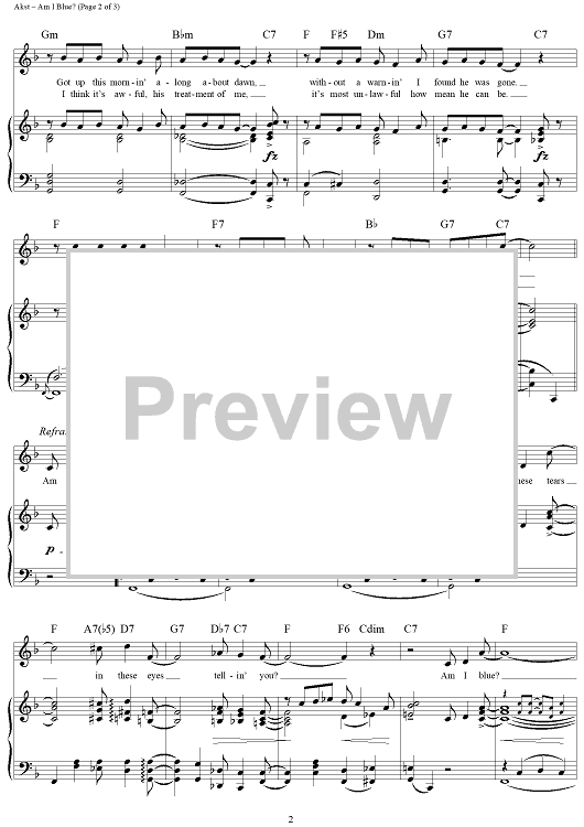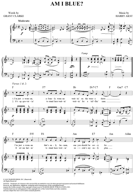 Digital Sheet Music for Am I Blue? by Harry Akst, Grant Clarke scored for Piano/Vocal/Chords; id:297242