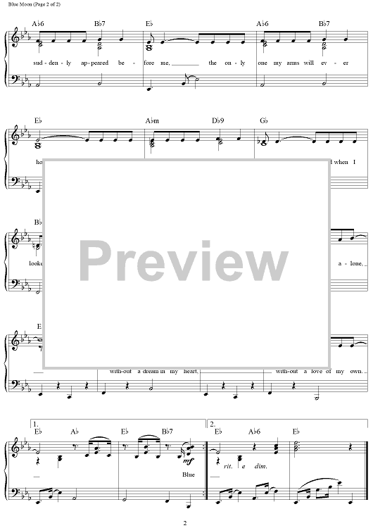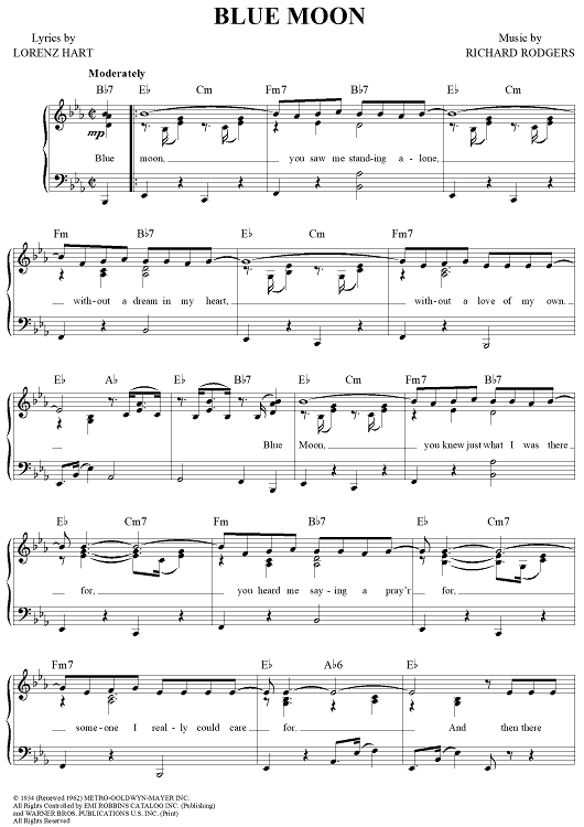 Digital Sheet Music for Blue Moon by Richard Rodgers, Lorenz Hart, The Marcels scored for Piano/Vocal/Chords; id:297211