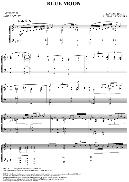 "Blue Moon" Sheet Music by Andre Previn