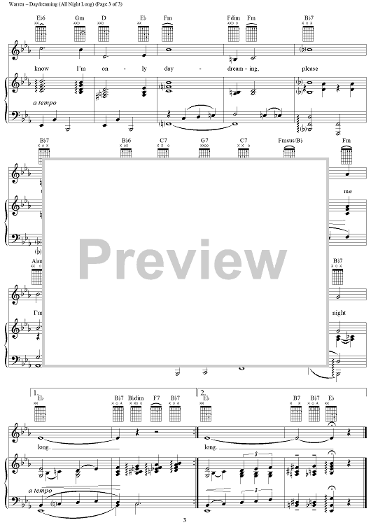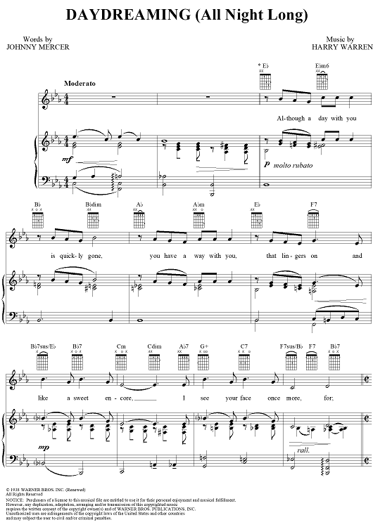 Digital Sheet Music for Daydreaming (All Night Long) by Johnny Mercer, Harry Warren scored for Piano/Vocal/Chords; id:143707