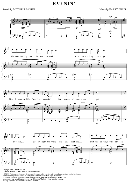 Digital Sheet Music for Evenin' by Mitchell Parish, Harry White scored for Piano/Vocal; id:264155