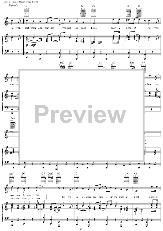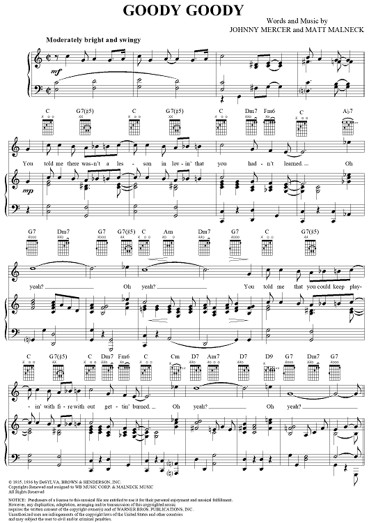 Digital Sheet Music for Goody Goody by Frank Sinatra, Johnny Mercer, Matt Malneck scored for Piano/Vocal/Chords; id:252013