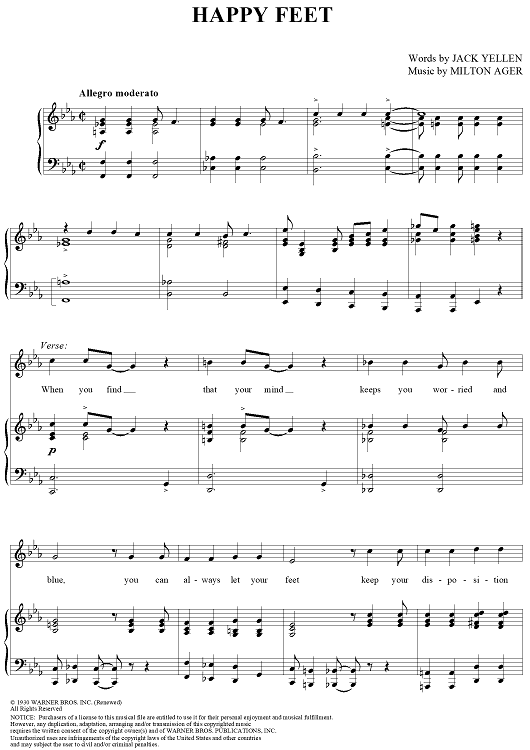 Digital Sheet Music for Happy Feet by Milton Ager, Jack Yellen scored for Piano/Vocal; id:240290