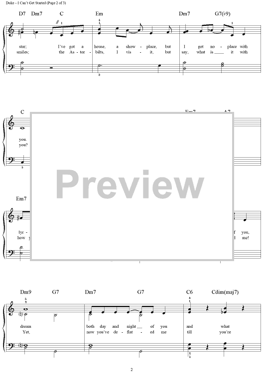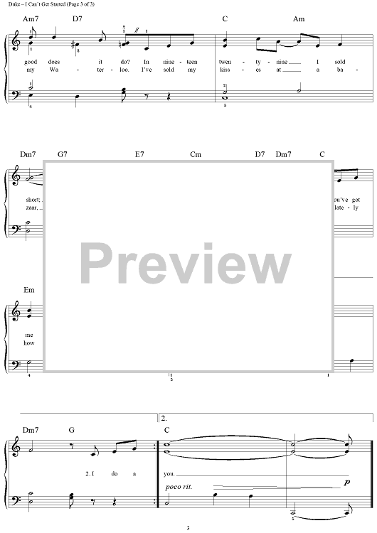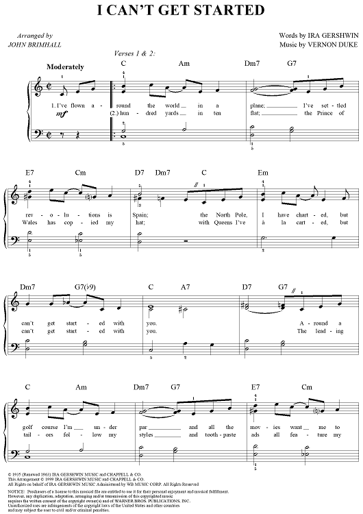 Digital Sheet Music for I Can't Get Started by Ira Gershwin, Vernon Duke, John Brimhall scored for Easy Piano/Vocal; id:270793