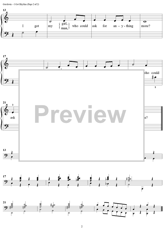 Digital Sheet Music for I Got Rhythm by George Gershwin, Ira Gershwin, Jerry Ray scored for Easy Piano/Vocal; id:286267