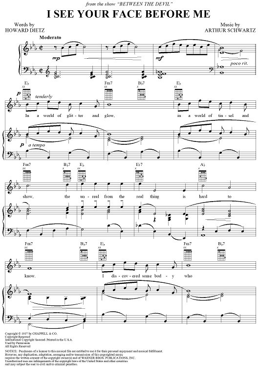 Digital Sheet Music for I See Your Face Before Me by Frank Sinatra, Howard Dietz, Arthur Schwartz scored for Piano/Vocal/Chords; id:234782