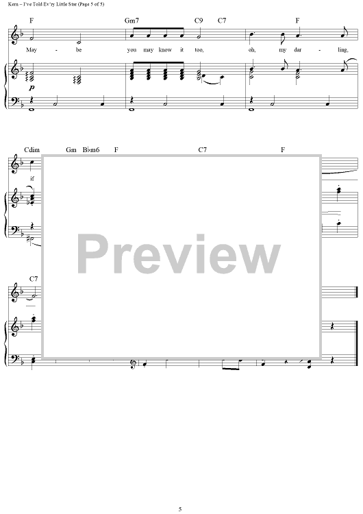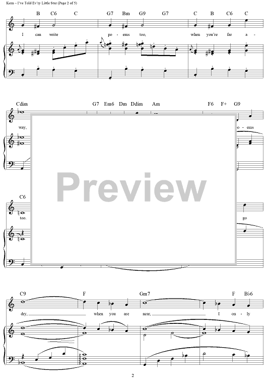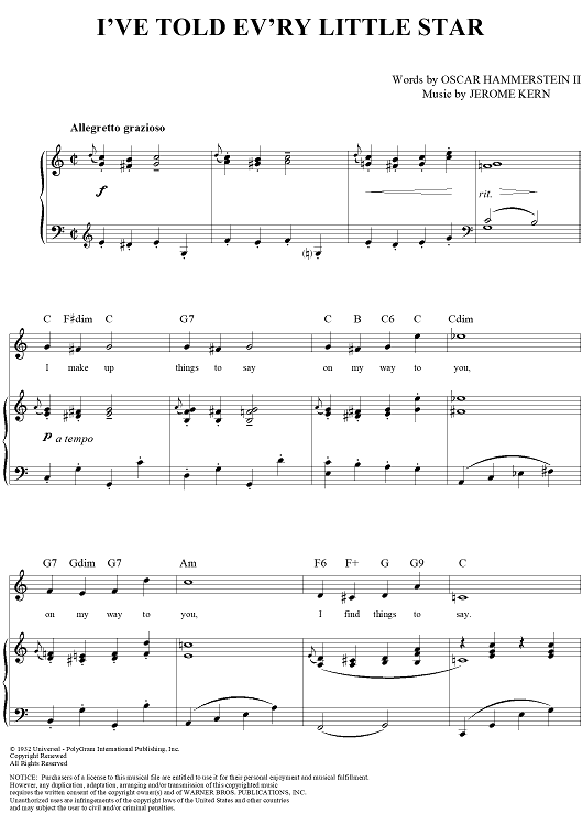 Digital Sheet Music for I've Told Ev'ry Little Star by Jerome Kern, Oscar Hammerstein II scored for Piano/Vocal/Chords; id:292529