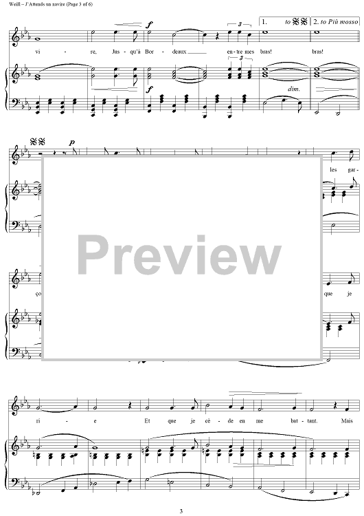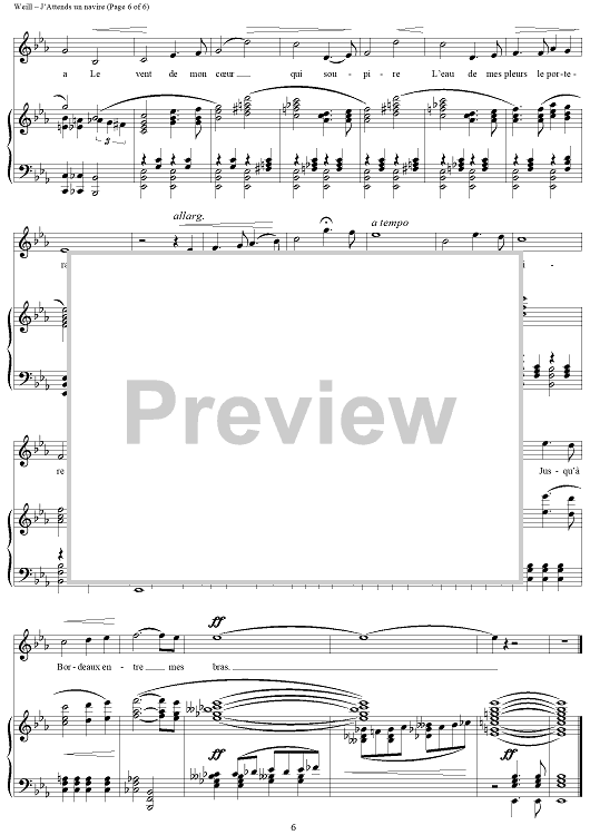 "J'Attends un navire" Sheet Music by Kurt Weill