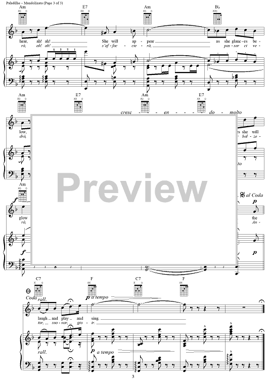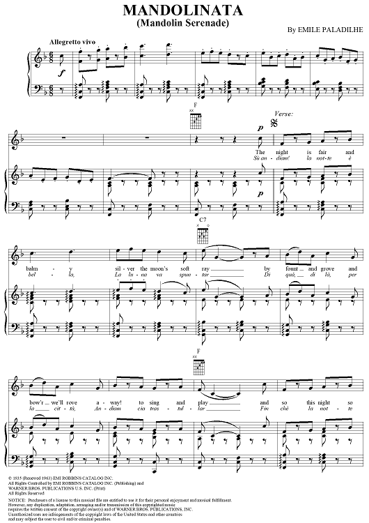Digital Sheet Music for Mandolinata by E. Paladilhe, Salvatore Di Giacomo scored for Piano/Vocal/Chords; id:289421