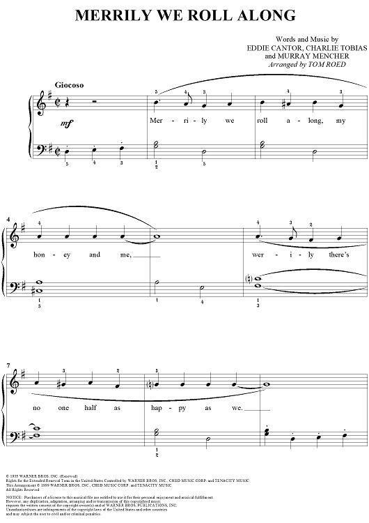 Digital Sheet Music for Merrily We Roll Along by Eddie Cantor, Tom Roed, Charlie Tobias, Murray Mencher scored for Easy Piano/Vocal; id:317749