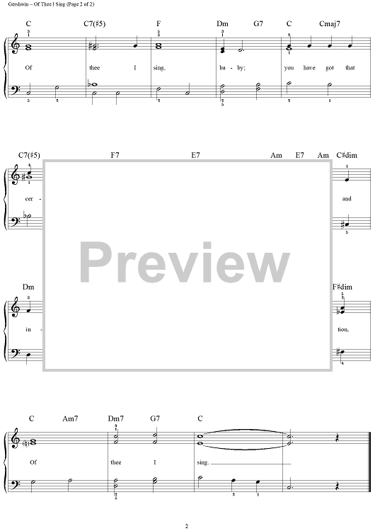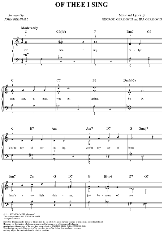 Digital Sheet Music for Of Thee I Sing by George Gershwin, Ira Gershwin, John Brimhall scored for Easy Piano/Vocal; id:268342