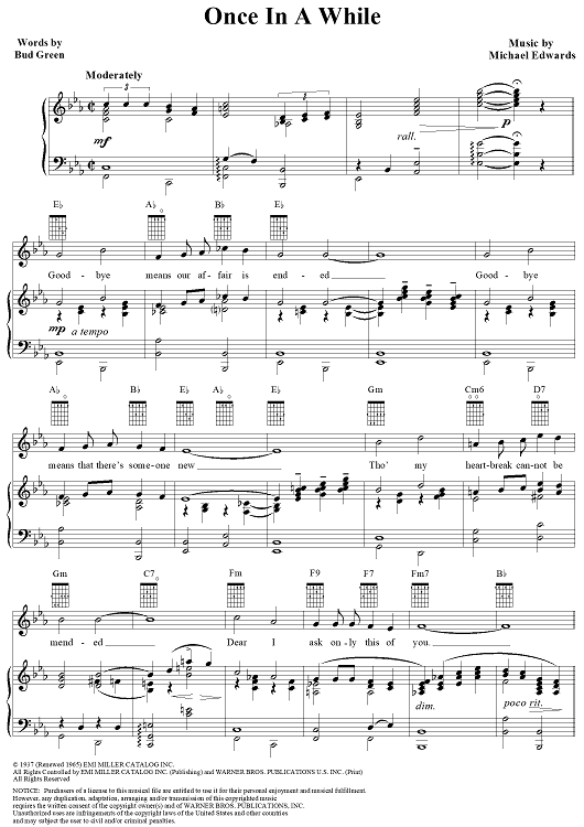 Digital Sheet Music for Once in a While by Fats Waller, Tommy Dorsey, Michael Edwards, Bud Green scored for Piano/Vocal/Chords; id:111967