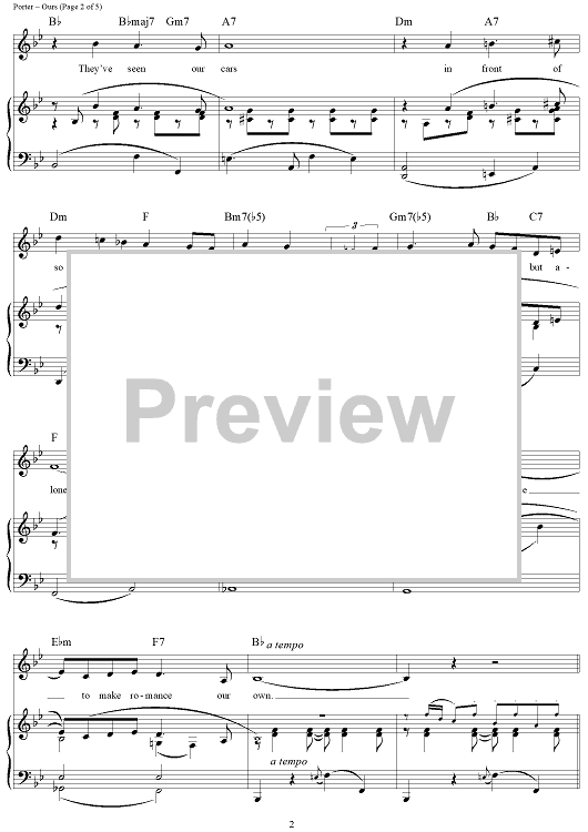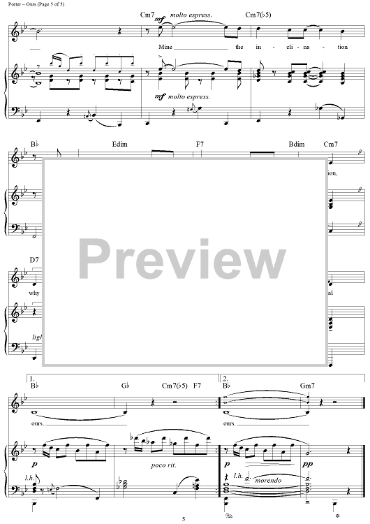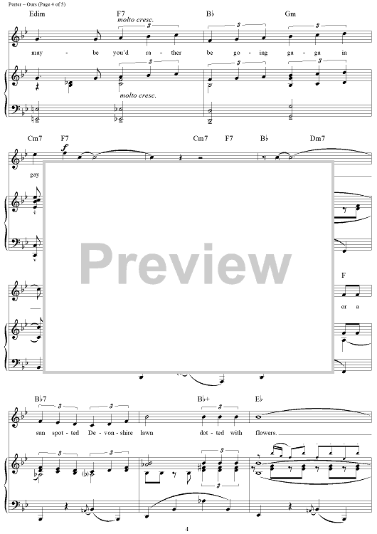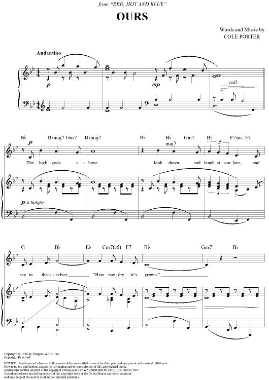 Digital Sheet Music for Ours by Cole Porter scored for Piano/Vocal/Chords; id:313900