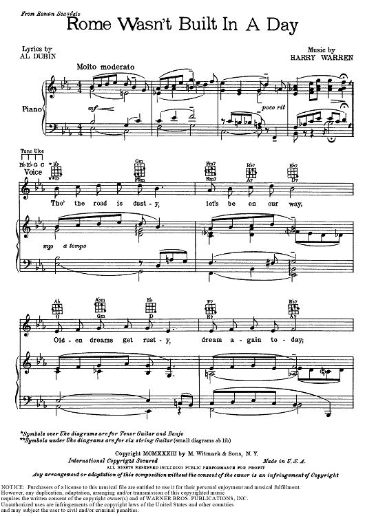 Digital Sheet Music for Rome Wasn't Built in a Day by Eddie Cantor, Harry Warren, Al Dubin scored for Piano/Vocal/Chords; id:174859