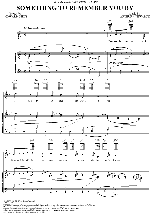 Digital Sheet Music for Something To Remember You By by Howard Dietz, Arthur Schwartz scored for Piano/Vocal/Chords; id:117946