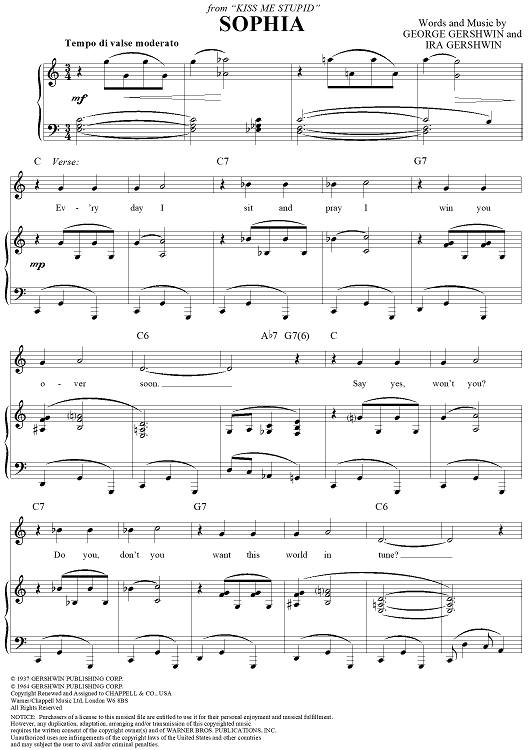 Digital Sheet Music for Sophia by George Gershwin, Ira Gershwin scored for Piano/Vocal/Chords; id:218993