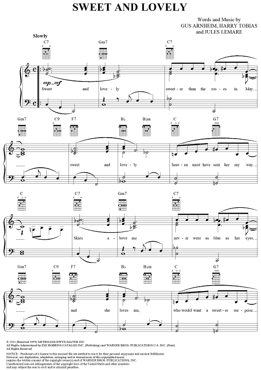 Digital Sheet Music for Sweet and Lovely by Gus Arnheim, Harry Tobias, Jules Lemare scored for Piano/Vocal/Chords; id:288073