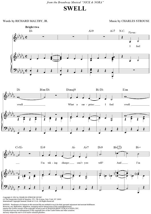 Digital Sheet Music for Swell by Charles Strouse, Richard Maltby Jr. scored for Piano/Vocal/Chords; id:235218