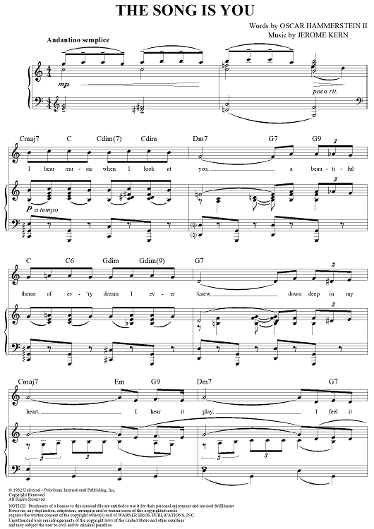 Digital Sheet Music for The Song Is You by Jerome Kern, Oscar Hammerstein II scored for Piano/Vocal/Chords; id:292554