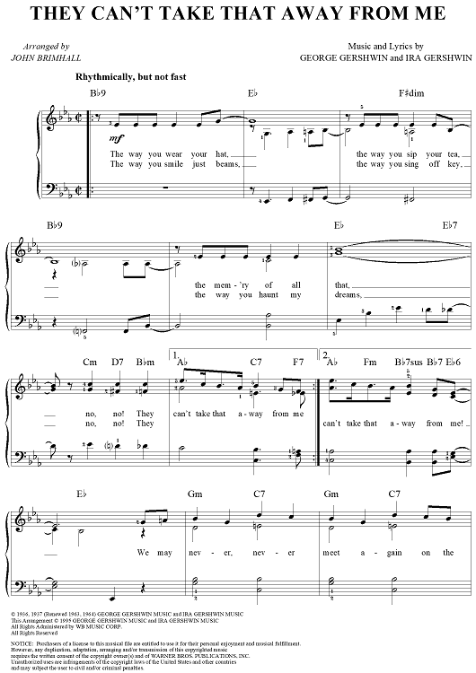Digital Sheet Music for They Can't Take That Away From Me by George Gershwin, Ira Gershwin, John Brimhall scored for Easy Piano/Vocal; id:268345