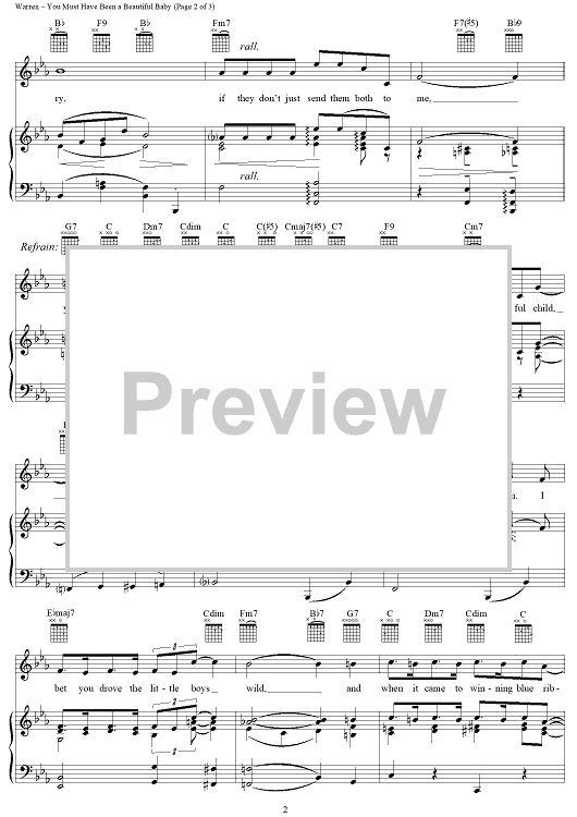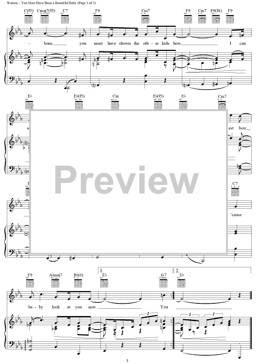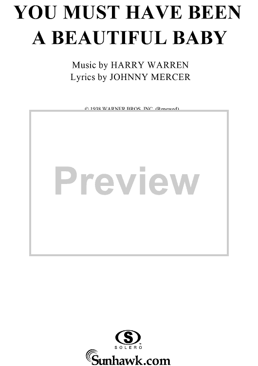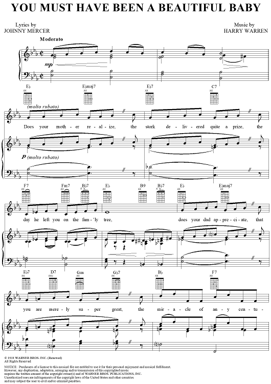 Digital Sheet Music for You Must Have Been a Beautiful Baby by Johnny Mercer, Bing Crosby, Harry Warren, Tommy Dorsey, Bobby Darin, Dick Powell, Russ Morgan, Michael Buble scored for Piano/Vocal/Chords; id:120776